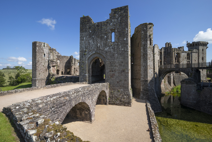 One of the last true medieval castles built in Wales, Raglan Castle is a striking fortress in Monmouthshire, known for its grand design and Tudor influences. Unlike many other castles in Wales, it was built for luxury as well as defence, featuring elegant towers, a great gatehouse, and a scenic moat.